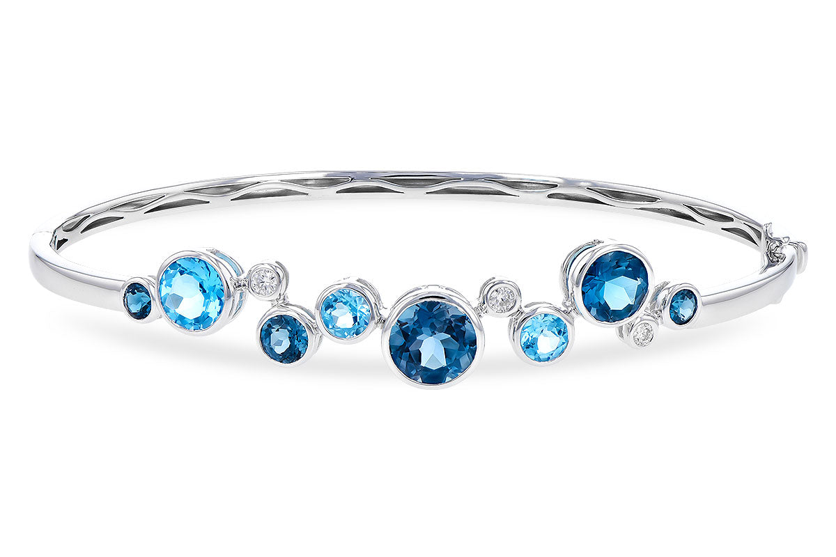 Wrap your wrist in elegance with our Blue Topaz Bangle Bracelet. This stunning piece features shining blue topaz, accented with sparkling diamonds, making it the perfect accessory for any occasion. Slip on this bracelet for a touch of sophistication and style.