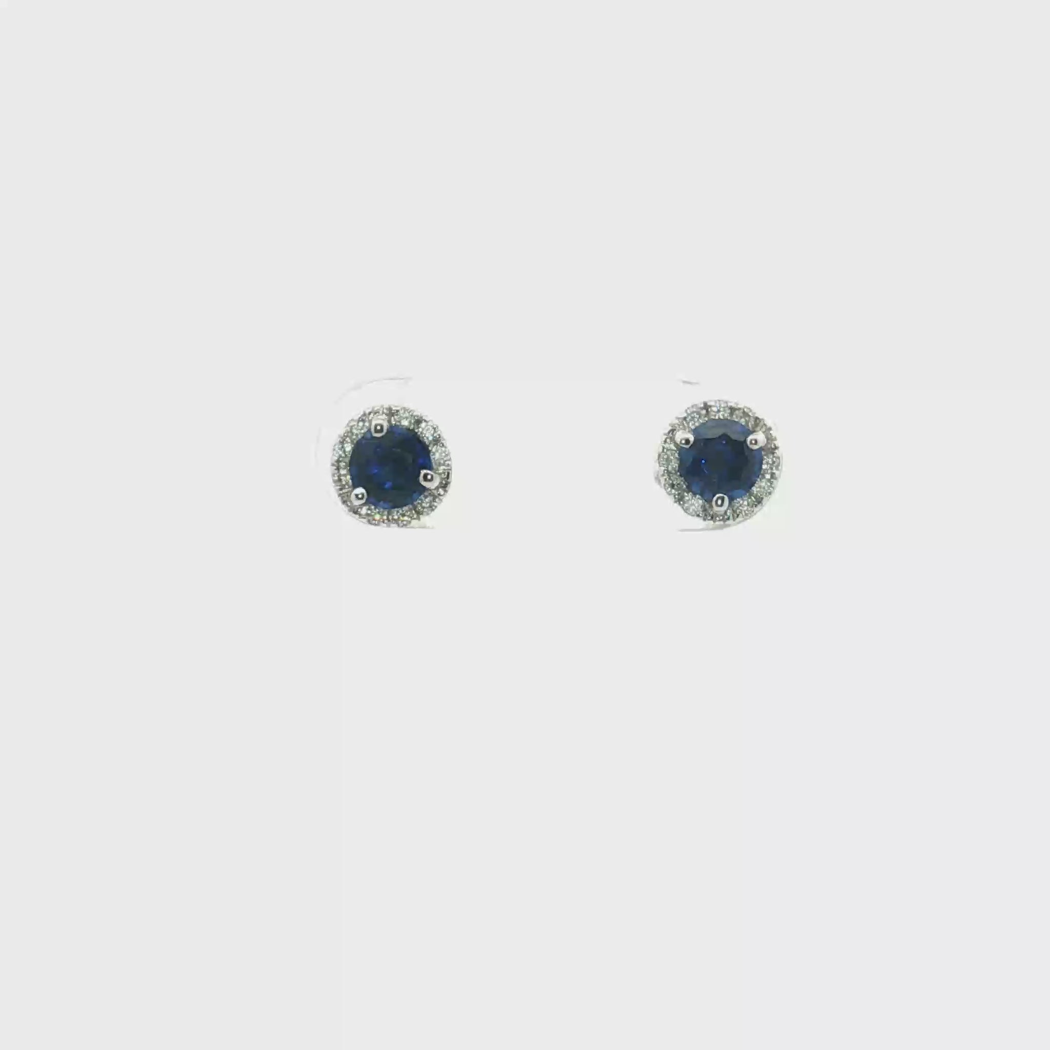 Experience timeless elegance with these exquisite stud earrings. Expertly crafted from 14K white gold, they feature a central round ceylon sapphire with a total carat weight of .81cts, exhibiting a deep blue hue. The .11 carats of diamonds surrounding the sapphire ensure a captivating sparkle.