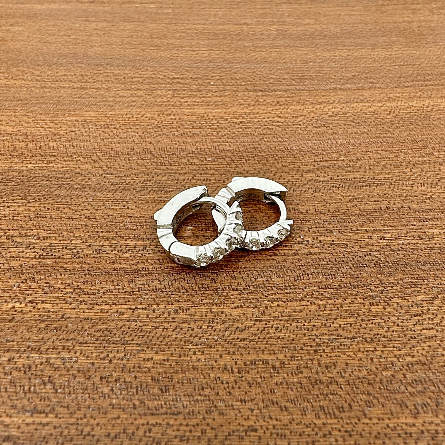 Enhance your sophisticated look with our Diamond Huggie Earrings. Made with 14k white gold and featuring a stunning .32 carat total weight of diamonds, these earrings bring elegance and sparkle to any outfit. Elevate your style today.