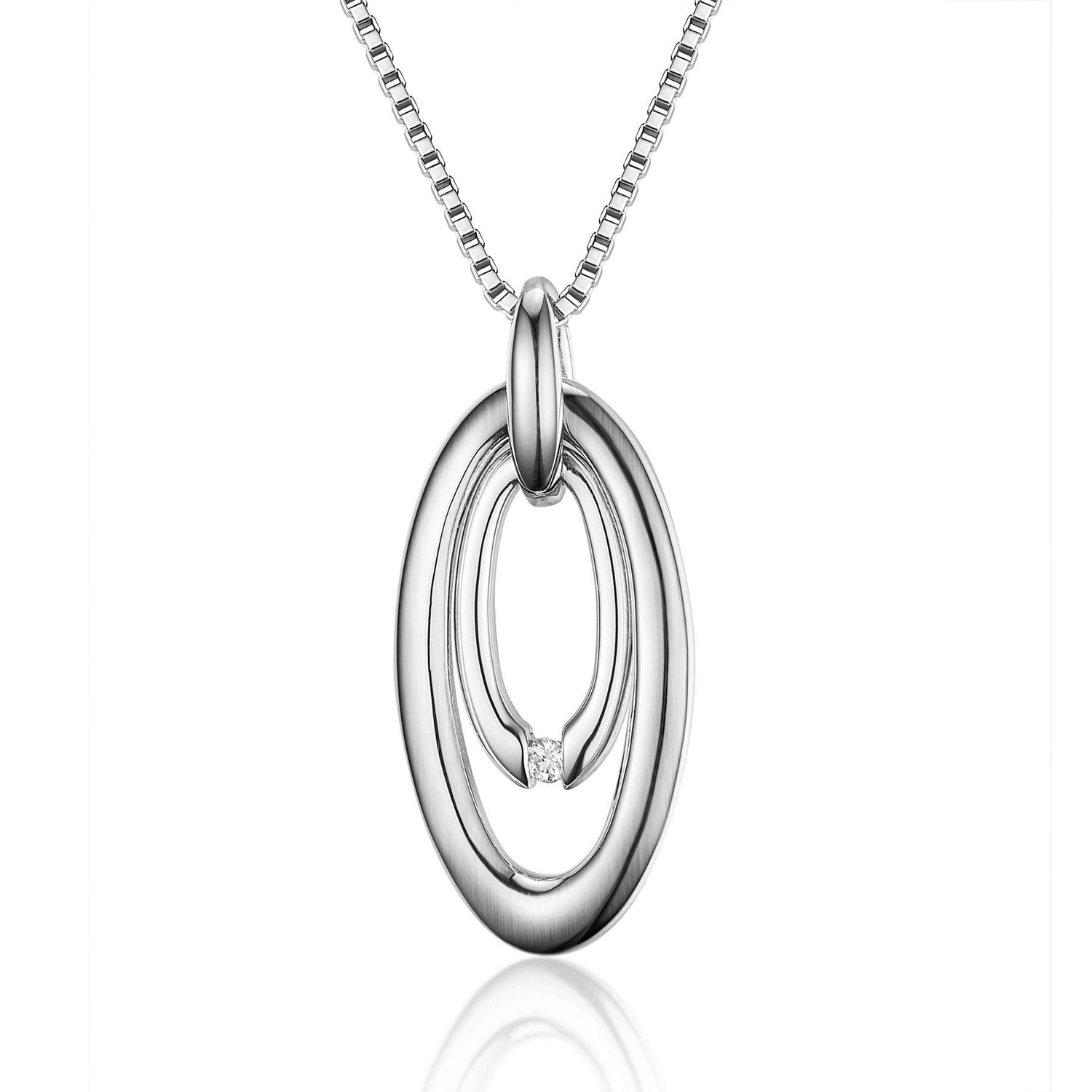 The pendant is crafted in sterling silver and forms two ovals - both matte polished - with the smaller one cradling a 0.015 carat diamond.