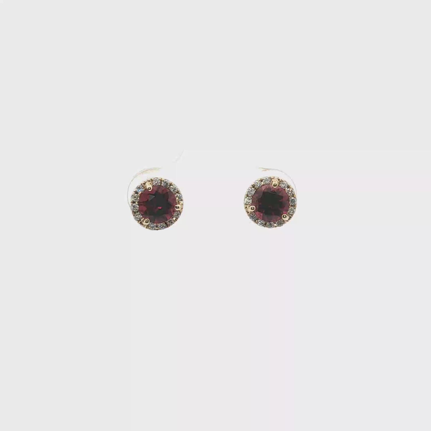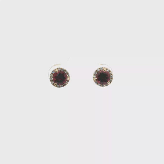 Garnet and Diamond Halo Stud Earrings