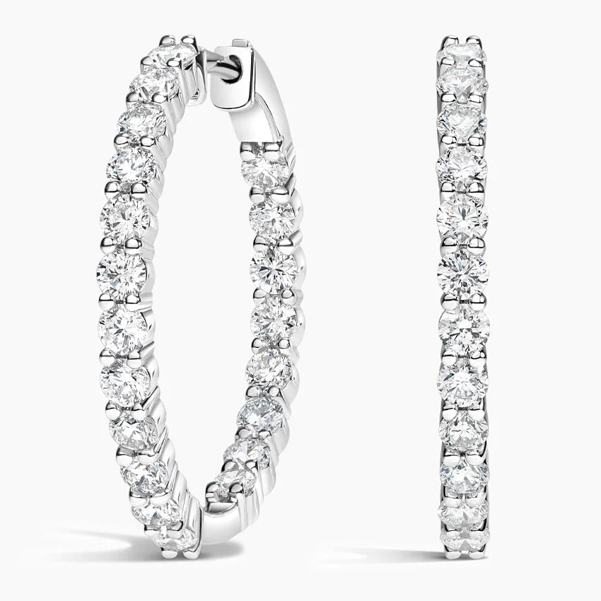 Add some sparkle to your style with our Lab grown Diamond Hoops. These 14k white gold inside outside diamond hoops feature 1.57 carats of lab grown diamonds that shine from the outside and inside. Such a beautiful look!
