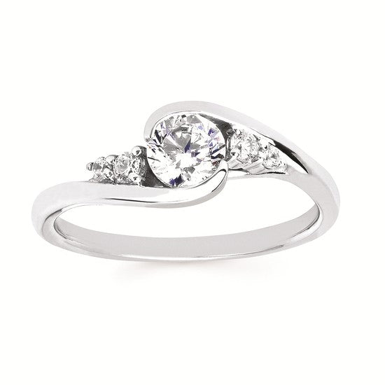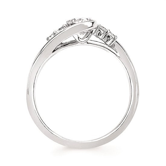 14KW bridal set with engagement ring to fit .50ct round center diamond. .05ctw accenting diamonds. Includes a matching curved 14kw band.